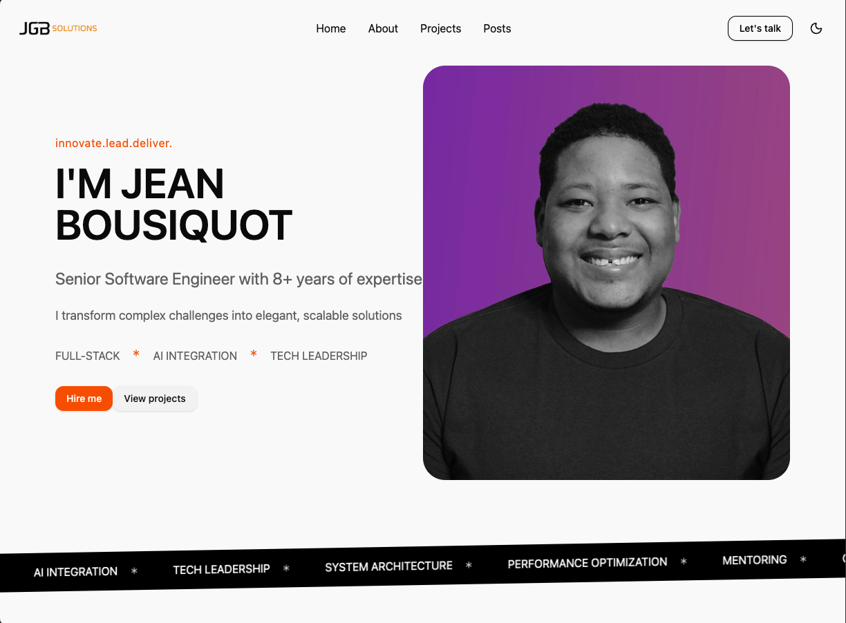 High-performance portfolio showcasing full-stack expertise in React, TypeScript, and AI integration.